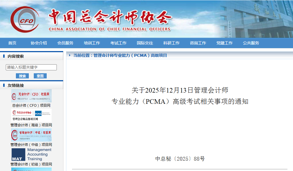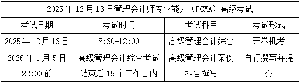 为确保中国总会计师协会(以下简称中总协)2025年12月13日管理会计师专业能力(PCMA)高级考试顺利进行,现将考试相关事项通知如下:
