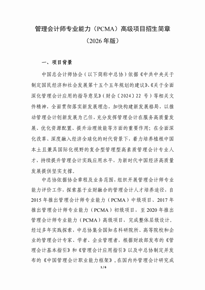 附件:管理会计师专业能力(PCMA)高级项目招生简章(2026年版)