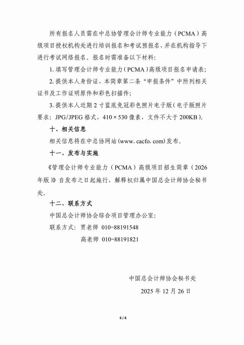 同时为做好管理会计师专业能力(PCMA)高级项目2026年度招生工作,现将《管理会计师专业能力(PCMA)高级项目招生简章(2026年版)》予以公布。