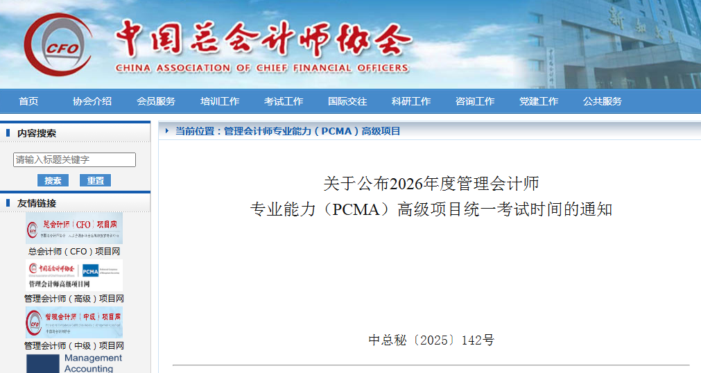 根据中国总会计师协会2026年总体工作安排,管理会计师专业能力(PCMA)高级项目统一考试拟举行两次,具体安排如下: