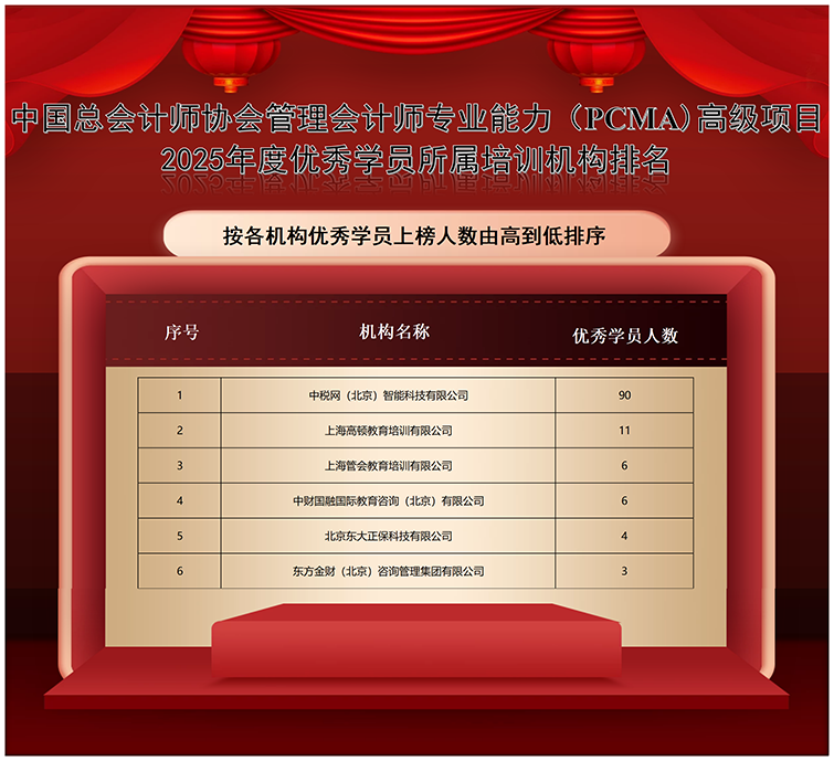 中国总会计师协会管理会计师专业能力(PCMA)高级项目2025年度优秀学员所属培训机构排名